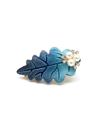 Generic - توكة شعر نسائية فاخرة بتصميم ورقة شجر مرصعة باللؤلؤ والكريستال | مشبك شعر أنيق وقوي | إكسسوار شعر كلاسيكي للمناسبات وحفلات الزفاف | الوان متعددة (بترولي)