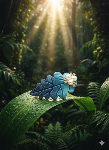 - تصميم ورقة شجر راقٍ: توكة شعر (مشبك) أنيق، يتميز بتصميم ورقة الشجر المعدنية بالوان متعددة ، مع تزيين مركزي فاخر بثلاث حبات من اللؤلؤ الصناعي محاطة بكريستالات لامعة.