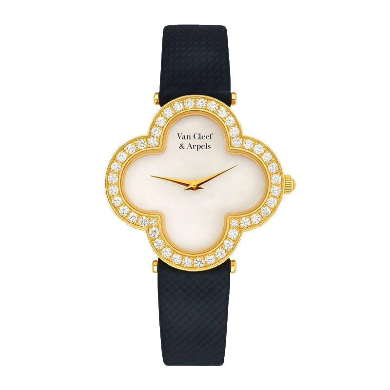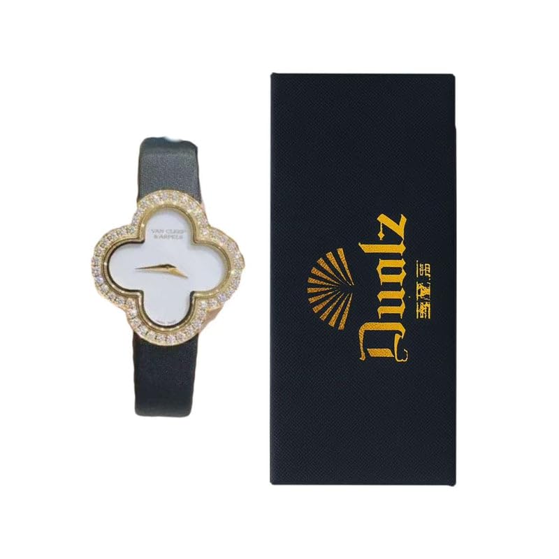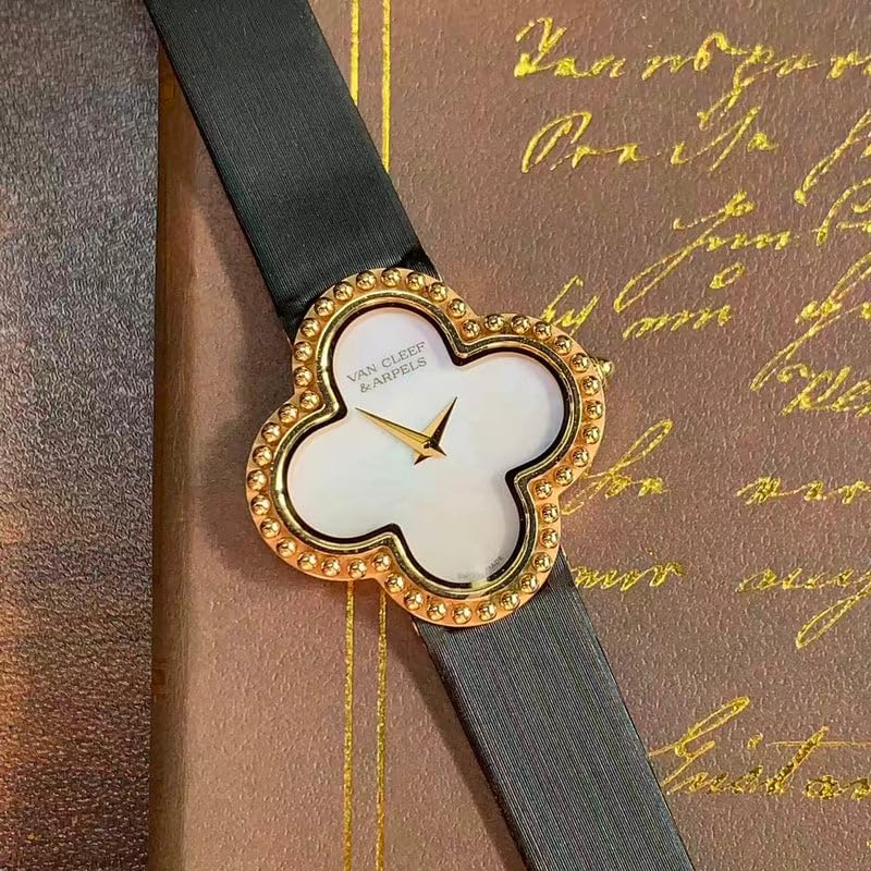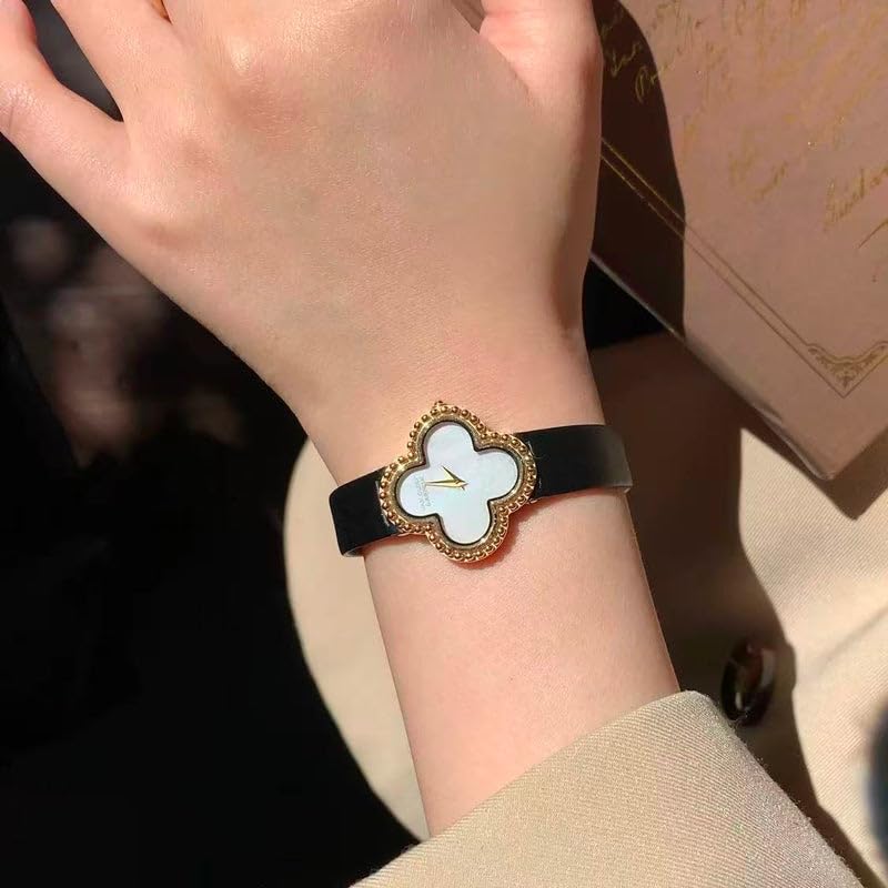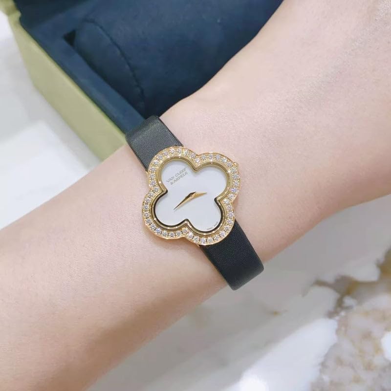 Generic - ساعة فاخرة للنساء على شكل زهرة البرسيم مع إطار كريستالي مرصع بالألماس، ومينا لامع أنيق وسوار أزرق كحلي