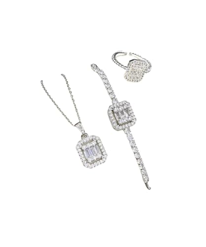 Generic - طقم مجوهرات نسائي فاخر، قلادة وإسوارة وخاتم مرصعة بالكريستال، ذهبي اللون مع تصميم هندسي أنيق