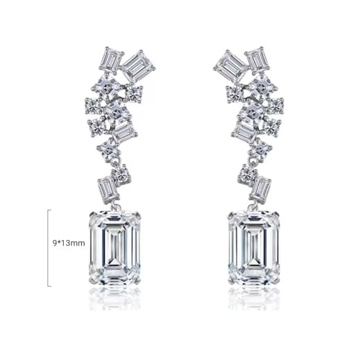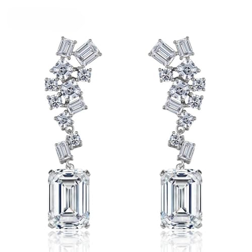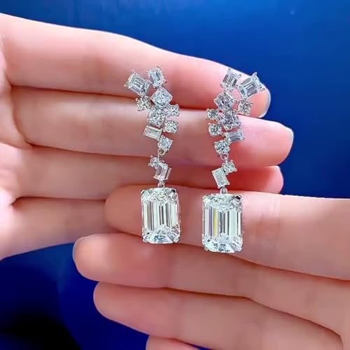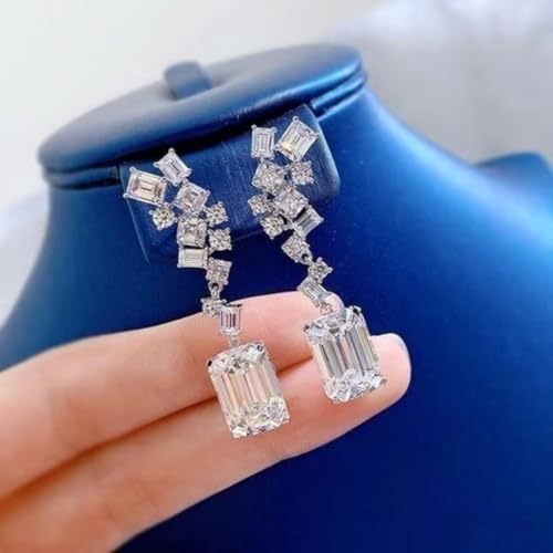 Generic - اقراط متدلية فاخرة للنساء من البلاتين مع زركونيا سويسرية لامعة بقطع الزمرد - اقراط عنقودية انيقة لحفلات الزفاف والمناسبات - لا تسبب الحساسية ومقاومة للبهتان