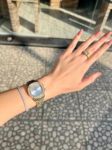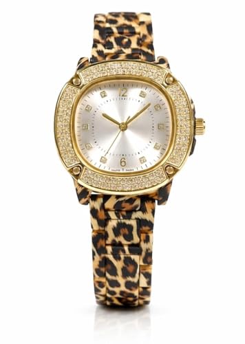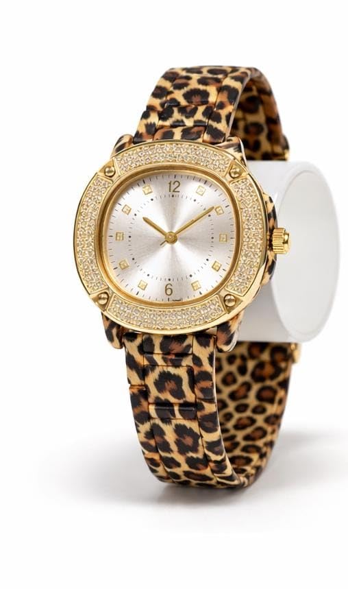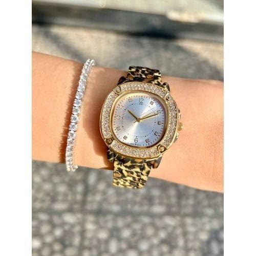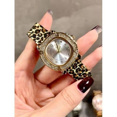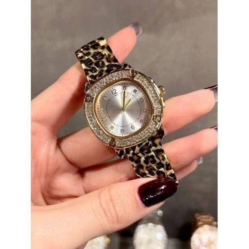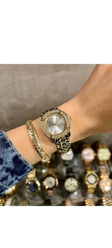 Generic - ساعة يد نسائية فاخرة بسوار نمط التايجر (فهد) - هيكل ستانلس ستيل مطلي بالذهب ومرصع بالفصوص الكريستالية
