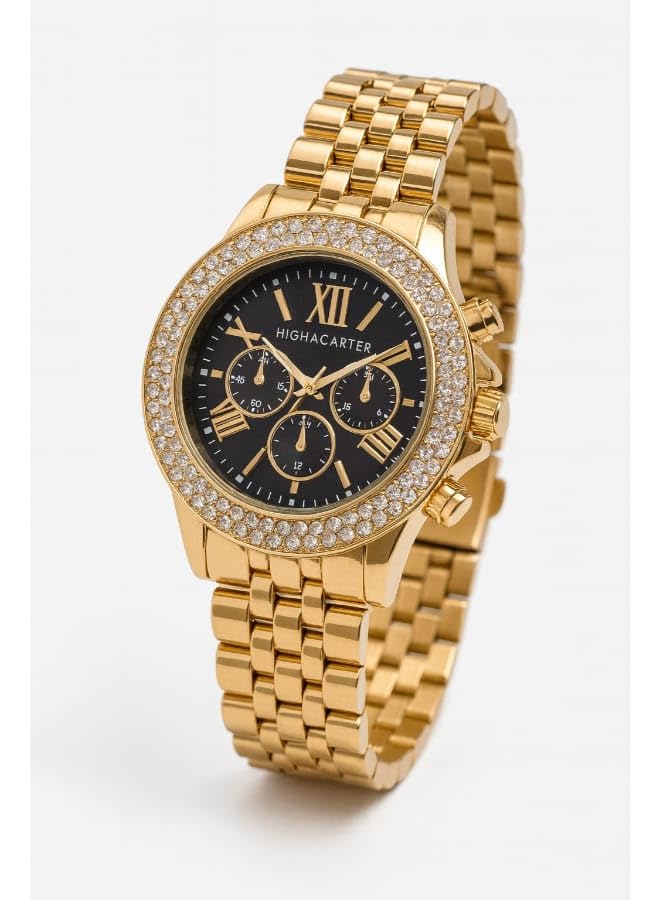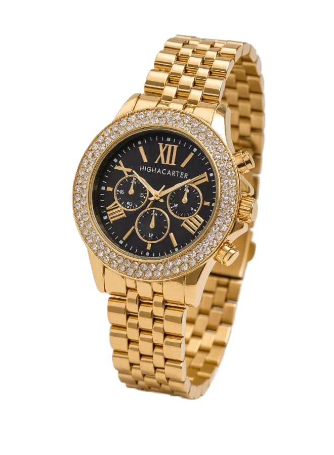 Generic - ساعة نسائية فاخرة، إطار ذهبي وفضي، ميناء أسود مرصع بالكريستال، سوار معدني مزدوج، قطر ٣.٥ سم، تصميم كلاسيكي أنيق، مناسبة للمناسبات اليومية والرسمية