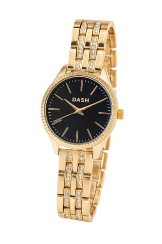 Generic - ساعة نسائية فاخرة، إطار دائري ذهبي مرصع بالكريستال، مينا سوداء، سوار ستانلس ستيل، 2.8 سم