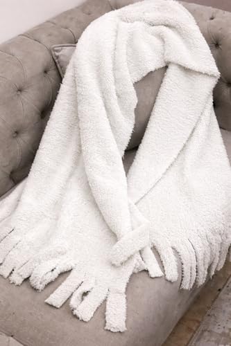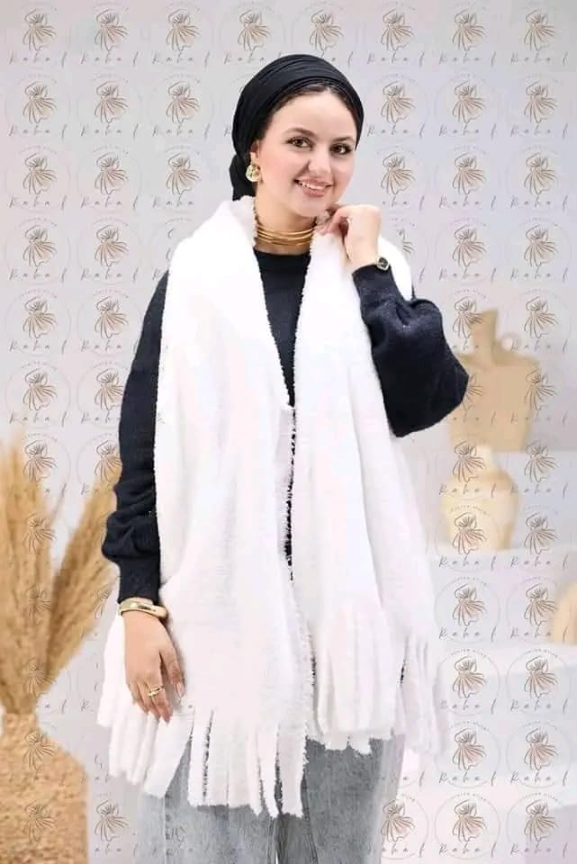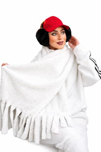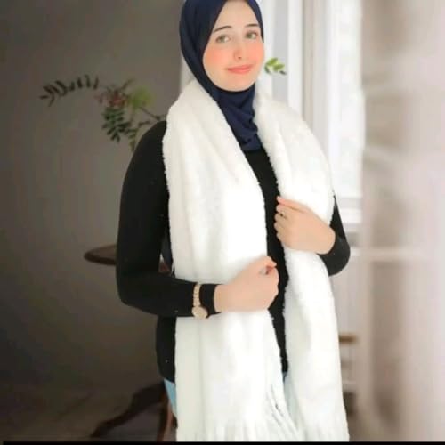 Generic - شال فرو شتوي حريمي فاخر بخامة بولار مستوردة وملمس قطيفة ناعم - سكارف طويل ابيض بشراشيب للتدفئة والأناقة - مقاس كبير 2 متر × 60 سم
