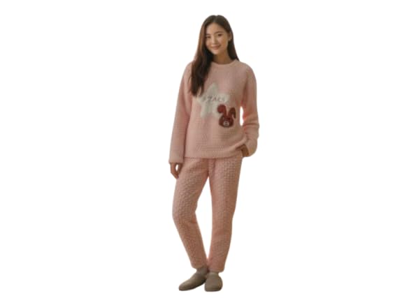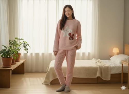 Generic - بيجامة شتوية نسائية فاخرة، فرو وشين وردية ناعمة، تصميم مريح للمنزل