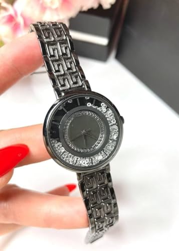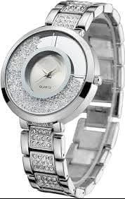 Generic - ساعة يد نسائية فاخرة بكريستال، فضي، بسوار معدني فاخر