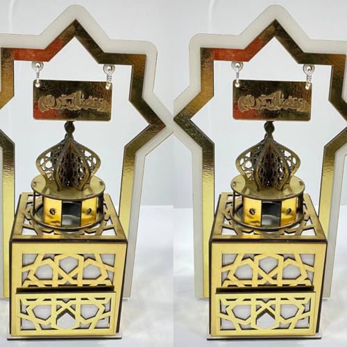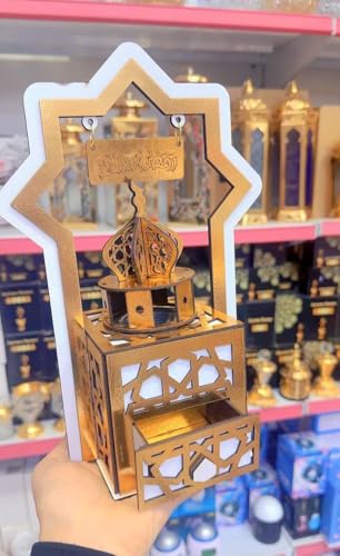 Generic - مبخرة خشبية فاخرة بتصميم ارابيسك "رمضان كريم"، حجم كبير مع درج تخزين عملي، قطعة ديكور أنيقة للمنزل والمجلس أو لتعطير الأجواء بروائح فاخرة، عبوة من قطعتين
