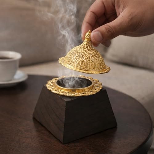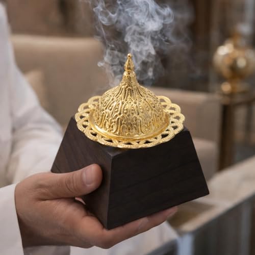 - تصميم فني تقليدي وأنيق – مبخرة خشبية مع لمسات نحاسية تضيف لمسة فخامة ودفء على أي مكان في المنزل أو المكتب، وتناسب جميع أنماط الديكور.