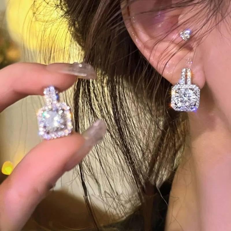 Generic - اقراط زركون فاخرة للنساء بتصميم هالو متدلي انيق ولامع، مجوهرات للحفلات او الهدايا
