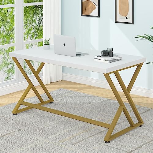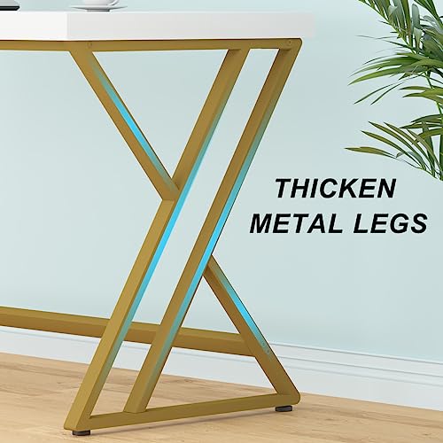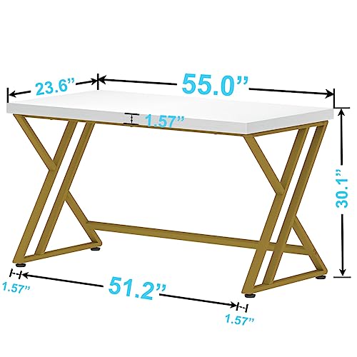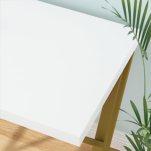 LVB - ال في بي مكتب كمبيوتر عصري بلون ابيض وذهبي منزلي طاولة دراسة خشبية للالعاب والكتابة والعمل صغير الحجم بتصميم ريفي بسيط للطلاب مع مساحة تخزين غرفة النوم 55 انش
