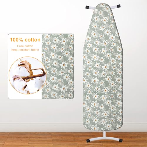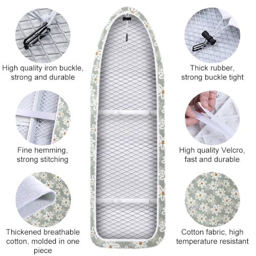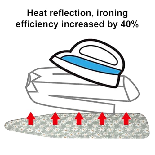 - |خامة قطن فاخرة - صُنع غطاء طاولة الكي من قطن عالي الجودة، مما يوفر سطحًا أملسًا ومتينًا يساعدك على الكي بكفاءة. يمكنك الاستمتاع بميزات القطن الفائقة، التي تمنحك ملابسًا بمظهر مكوي بإتقان في كل مرة.