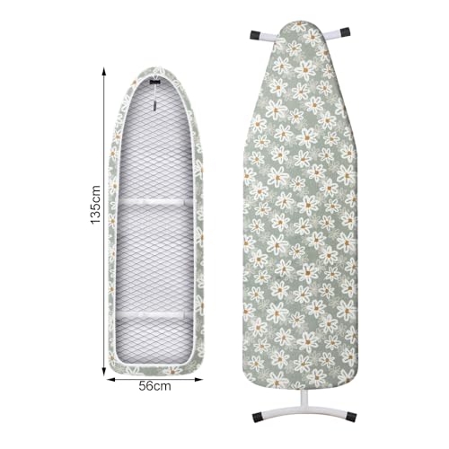 Lvjkes - غطاء طاولة كي بأستك قطن 100% قابل للتنظيف في الغسالة بحجم كبير جدًا من لفجكس، مقاس 135 متر × 56 سم، تصميم زهرة دوار الشمس