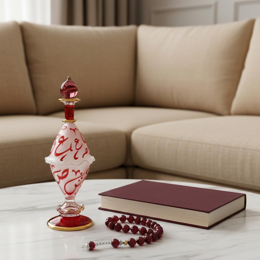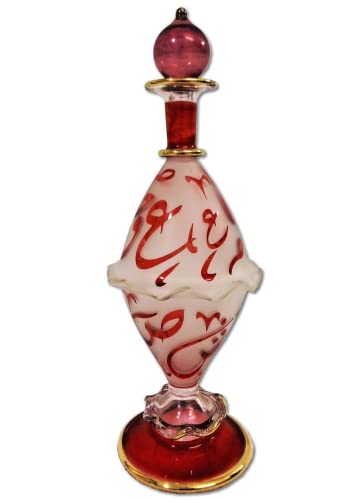 Generic - زجاجة عطر مصرية مرسومة باليد من ال دبليو 2، زجاج منفوخ بالفم، تصميم الخط العربي الاحمر، ارتفاع 20 سم، لمسات ذهبية