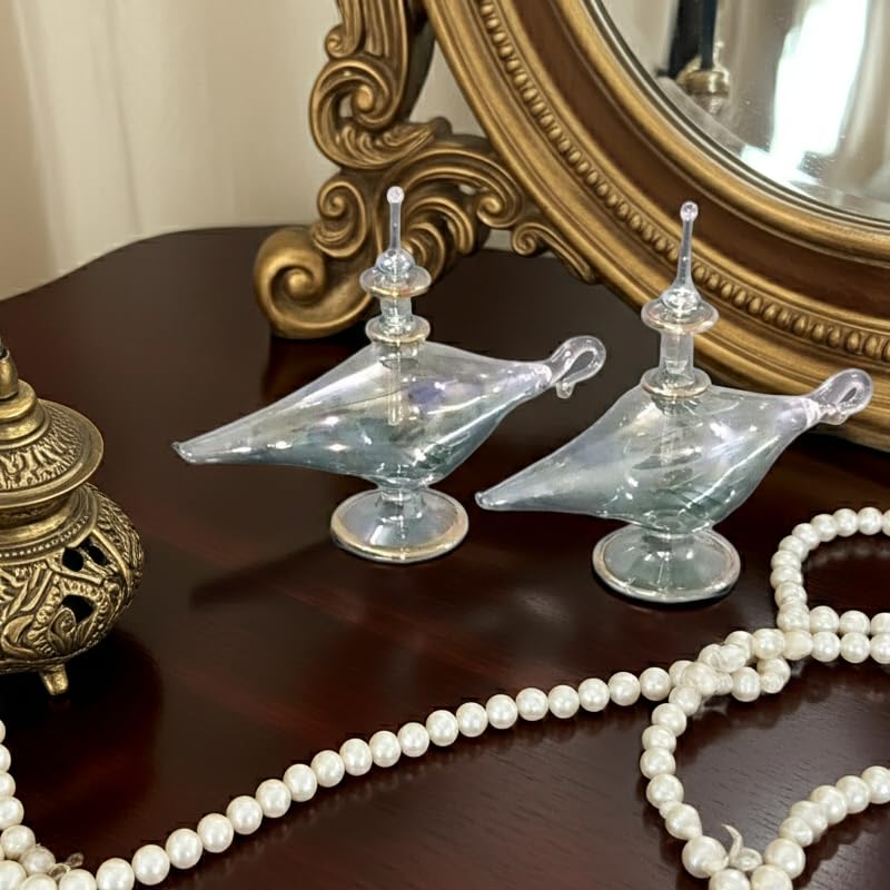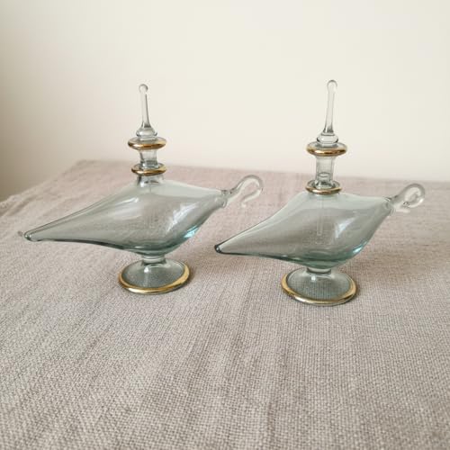 Generic - زجاجات عطر زجاجية مصرية مصنوعة يدويًا LW38، منفوخة بالفم مع لمسات ذهبية، نمط علاء الدين 12 سم، مجموعة من قطعتين