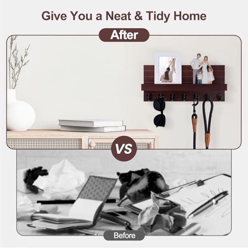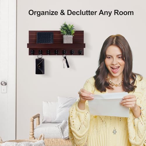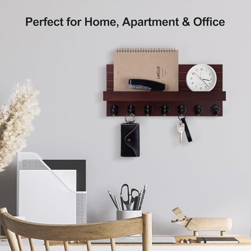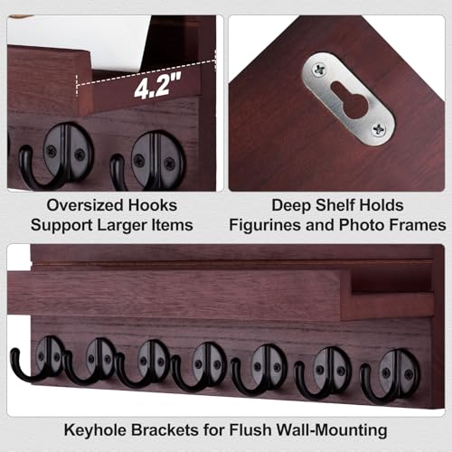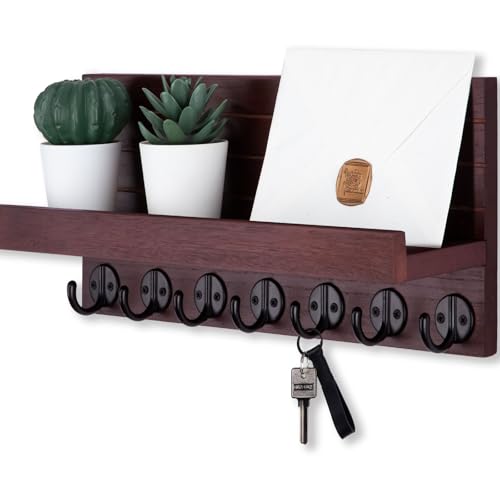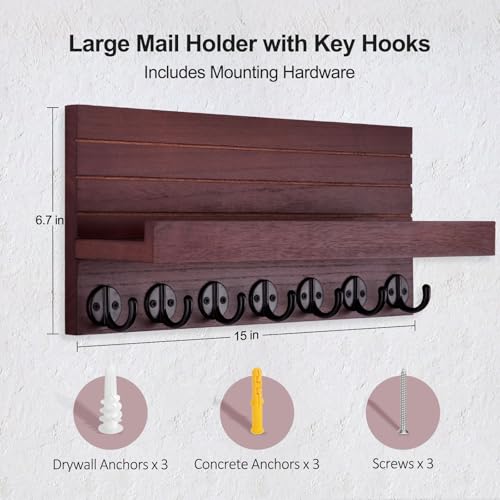 Lwenki - ال وينكي حامل مفاتيح يثبت على الحائط مفتاح المدخل والبريد مع 7 خطافات متينة للنظارات الشمسية مقود الكلب رف حائط مزخرف ادوات تركيب 15 انش عرض × 6.7 ارتفاع 4.2 عمق احمر داكن خشب 33.0 رطل 33.0