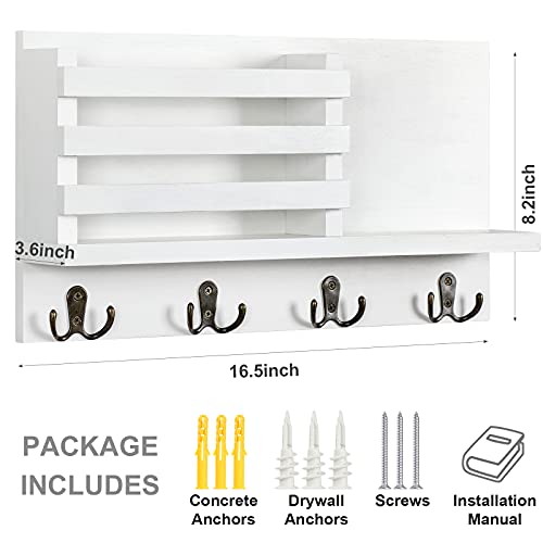 - ✅ سعة تخزين كبيرة - حافظ على جميع الضروريات في متناول اليد. يتميز منظم الحائط هذا بفتحة بريد واحدة و4 خطافات مزدوجة ورف عائم للزينة. يمكنه دعم ما يصل إلى 20 باوند من العناصر.