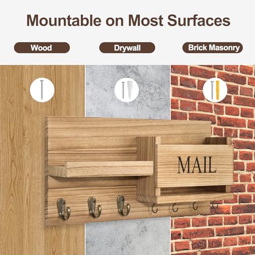 Lwenki - ال وينكي منظم بريد يثبت على الحائط - حامل مفاتيح مع رف يتضمن خطابات وخطافات لديكور المنزل الريفي - خشب ريفي ادوات تركيب مسطحة 16.5 انش × 9.1 3.4 20.0 رطل 20.0