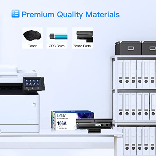 LxTek - خرطوشة حبر بديلة لموديل 106A متوافقة مع خرطوشة 106A، موديل W1106A، مناسبة لطابعات اتش بي ليزر من ال اكس تك 107a 107r 107w MFP 135a 135r 135w 135wg MFP 137fnw 137fwg (قطعة واحدة، لون اسود، مع رقاقة)