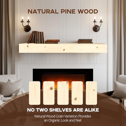 - ملمس الخشب الطبيعي: الرف الخشبي مصنوع من خشب الصنوبر الطبيعي مع حبيبات خشب جميلة. يضيف هذا الرف الزخرفي دفئًا إلى مساحة المعيشة لديك ويعزز أناقة أي مدفأة تحتوي على رف علوي.