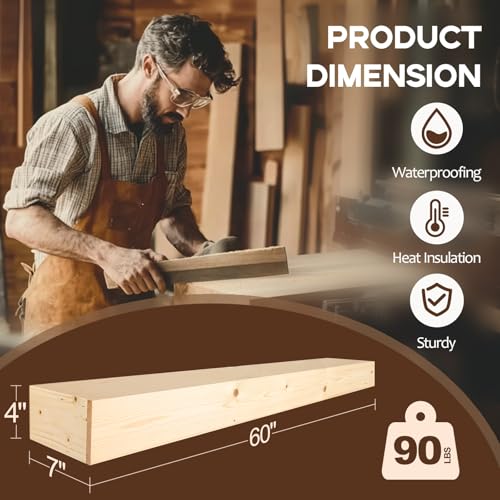 LXWZHK - رف مدفاة من LXWZHK، رف خشبي عائم للمدفأة مقاس 1.5 متر، أرفف معلقة على الحائط، أرفف زخرفية، أرفف عائمة بنمط ريفي، خشب طبيعي