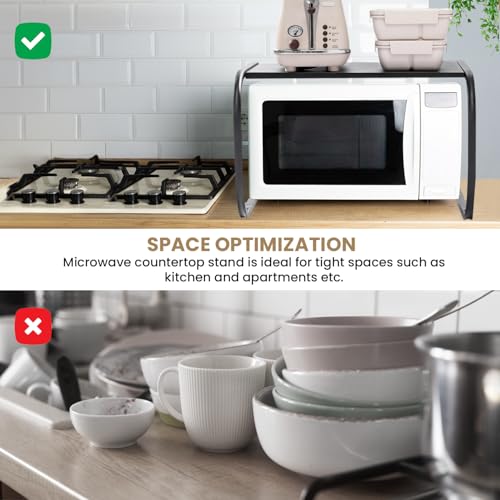 LYCOA - حامل ميكروويف لسطح الطاولة من ليكوا، منظم رف ميكروويف معدني بطبقتين للمساحات الصغيرة، رف فرن اسود صغير لطاولة المطبخ، رف طاولة ميكروويف قوي للمنزل او المكتب