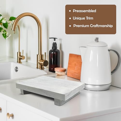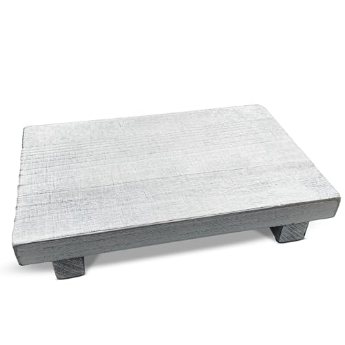 Lyfe Simple - حامل خشبي بسيط للديكور من لايف - قاعدة ريفي - صينية خشبية صغيرة يدوية الصنع - صابون لحوض المطبخ للاطباق للحمام للعرض ابيض 9 × 6 انش مستطيلي سيمبل خشب بولونيا.، من لايف سيمبل
