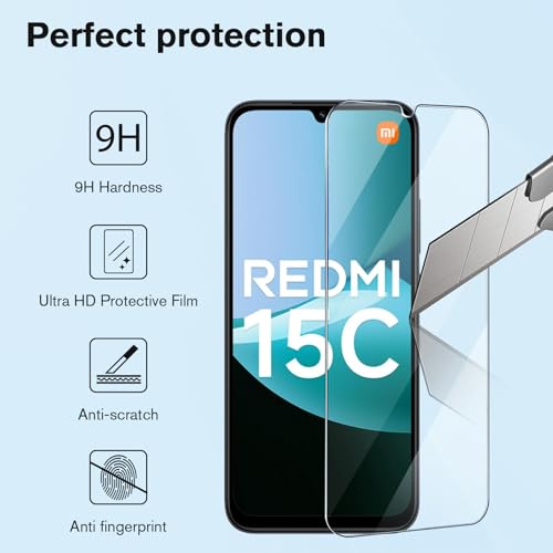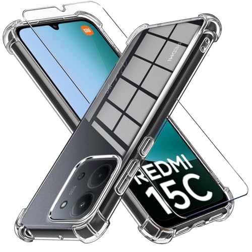 LYJERRY - غطاء وسادة هوائية + زجاج زجاجي متوافق مع شاومي ريدمي 15C، غطاء حماية مضاد للصدمات مع طبقة من الزجاج المقوى لموبايل شاومي ريدمي 15C من ليجيري