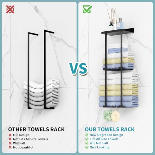 - موفر للمساحة - هذا الحامل مصمم بشكل معقول للغاية ومناسب للفوط ذات الأحجام المختلفة، خاصة لفوط الحمام الكبيرة. تم تصميم حامل فوط الحمام للتثبيت على الحائط لتوفير المساحة ولا يشغل مساحة كبيرة في الحمام.