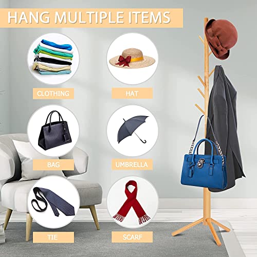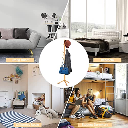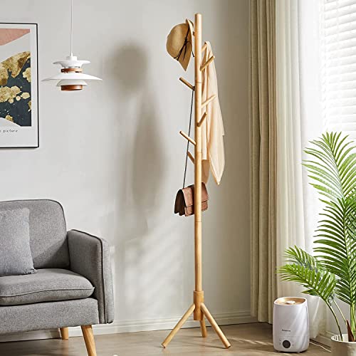 LYLYMYKHH - حامل معاطف خشبي قائم بذاته من ليليميخ قابل للتعديل شماعة خشبية متينة قائمة بذاتها مع 8 خطافات للمنزل وغرفة النوم والمكتب والرواق والمدخل