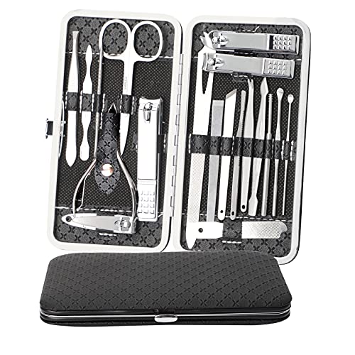 Generic - مجموعات مانيكير Lyneun 19 قطعة ، مقص أظافر احترافي من الفولاذ المقاوم للصدأ ، أدوات العناية بالباديكير والحواجب مع حقيبة جلدية فاخرة للسفر والمنزل , متعدد الالوان
