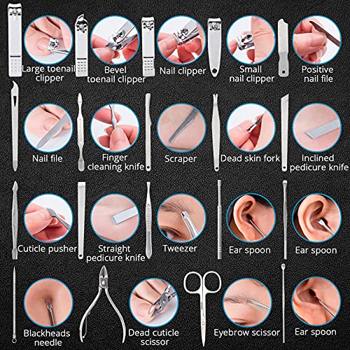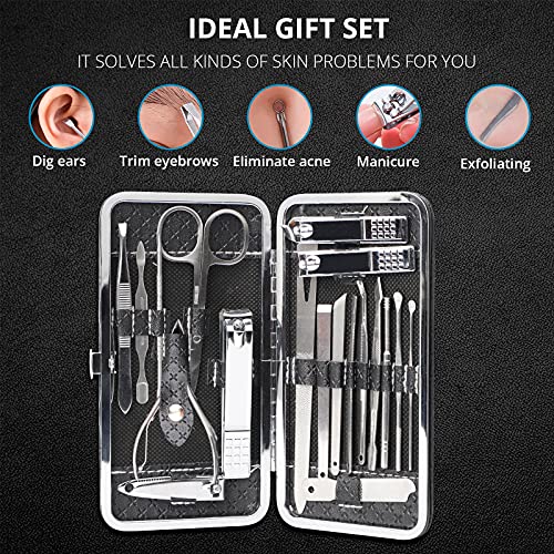 - 【مجموعة 19 في 1】تتضمن مجموعة مانيكير العناية بالوجه واليدين والقدم، إجمالي 19 قطعة، لحل جميع أنواع مشاكل البشرة بشكل مثالي، مثل تنظيف الآذان وقص الحواجب والقضاء على حب الشباب والمانيكير والتقشير، منتج واحد لا غنى عنه في منزلك.