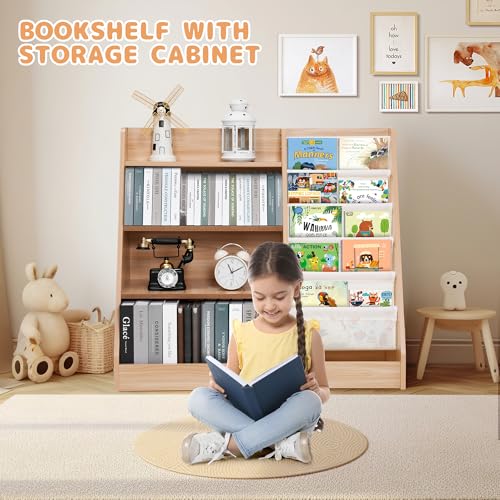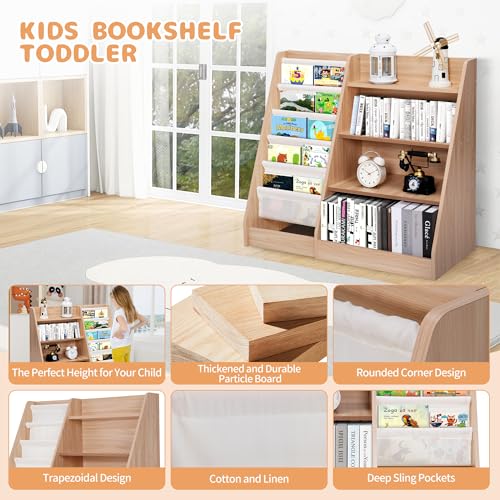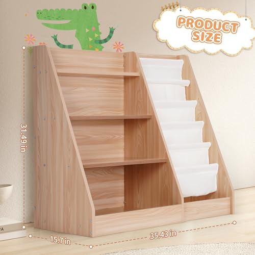 - مساحة تخزين واسعة وتصميم منظم: تم تصميم رف كتب الأطفال الخاص بنا مع وضع العملية في الاعتبار، ويتميز بـ 3 أرفف متينة وصندوق تخزين كبير في الأسفل، مثالي للكتب والألعاب والمزيد؛ رف العرض على الجانب الأيمن مثالي لتخزين وتنظيم الكتب المصورة، مما يشجع الأطفال على استكشاف قصصهم المفضلة بسهولة