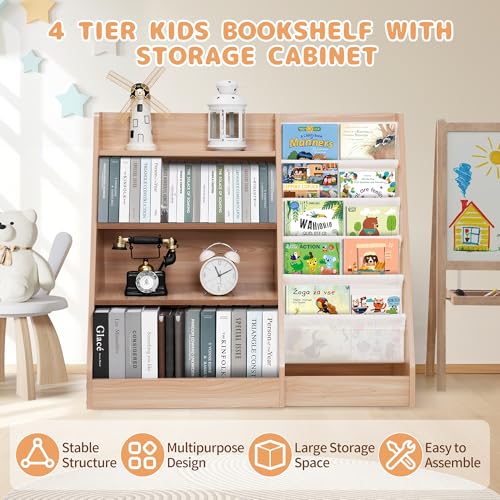 Lynxor - رف كتب خشبي للاطفال مكون من 4 طبقات من لينكسور، خزانة كتب للاطفال الصغار من 5 طبقات، خزانة منظم للكتب والالعاب، رف كتب مونتيسوري للاطفال للمنزل والحضانة وغرفة اللعب وغرفة النوم ورياض الاطفال من الخشب