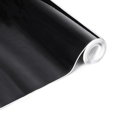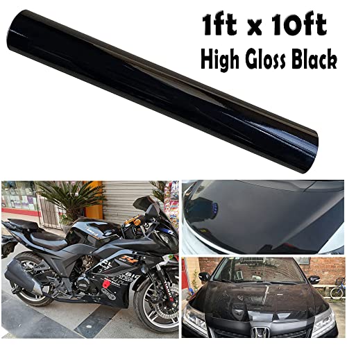 Lypumso - لايبومسو لفة تغليف من الفينيل للسيارة بلون اسود شديد اللمعان مقاس 1 قدم × 10 قدم تتميز بتقنية تحرير الهواء الخالية من الفقاعات، شريط لاصق ذاتي اللصق للسيارات والموتو والاثاث الداخلي