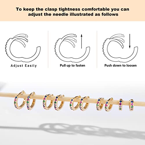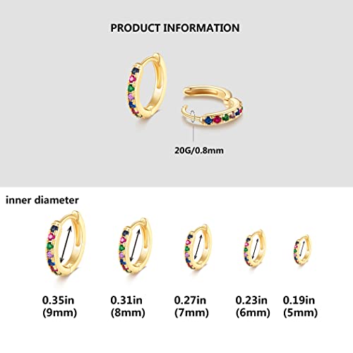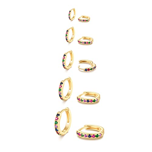 LYQIAN - اقراط حلقية صغيرة من الذهب عيار 14 قيراط ليكيان مجموعة مرصعة بالزركونيا المكعبة 5 ازواج لثقب الغضروف وهيليكس وفص شحمة الاذن 5/6/7/8/9 ملم للنساء نحاس أصفر
