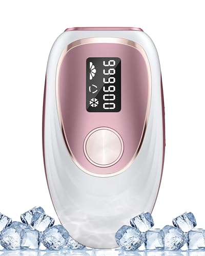 LYSMOSKI - جهاز لإزالة الشعر بالليزر مناسب للنساء والرجال، جهاز لإزالة الشعر بالنبض الضوئي وبدون ألم مزود بنظام تبريد ثلجي 999900 ومضة، ماكينة لإزالة الشعر بالنبض الضوئي من ليسموسكي