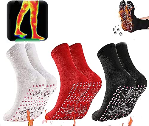 LYW - 3 ازواج من جوارب التورمالين ذاتية التسخين للتخسيس والتورمالين، جوارب صحية للتخسيس من التورمالين، جوارب علاج ارتفاع الحرارة، جورب يوريجون تورمالين اف اي ار لعلاج النقرس، أسود