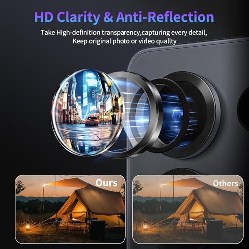 - [صديقة للحافظة وذات امتصاص قوي] - الحلقة الواقية لعدسة الكاميرا هذه تجعلها متوافقة مع أي حافظة هاتف تقريبًا. تضمن تقنية الامتصاص التلقائي بتقنية النانو الكهروستاتيكية المتزايدة عدم سقوطها بسهولة، ولا توجد بقايا عند إزالتها