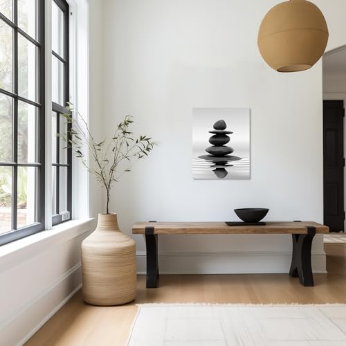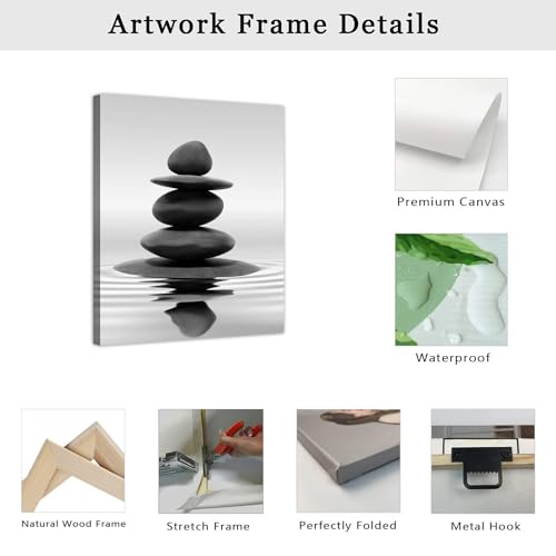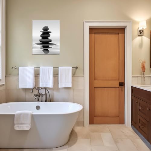 LZIMU - لوحات فنية جدارية من زين باللونين الاسود والابيض مطبوعة على القماش للحمام واليوغا والتامل وغرفة المعيشة النوم وديكورات الحائط باطار Zen-1 12 انش × 18 30 45 سم
