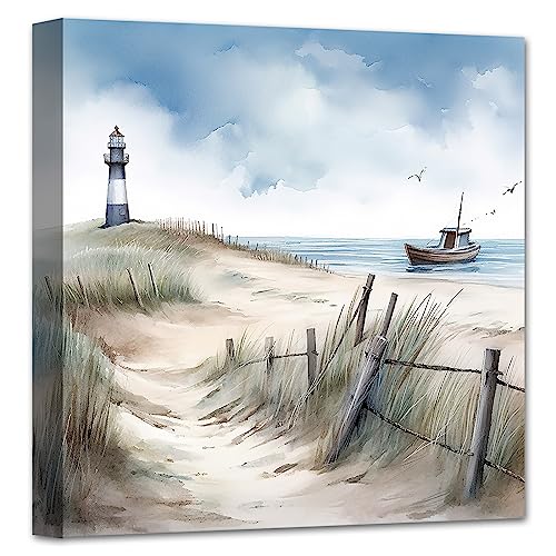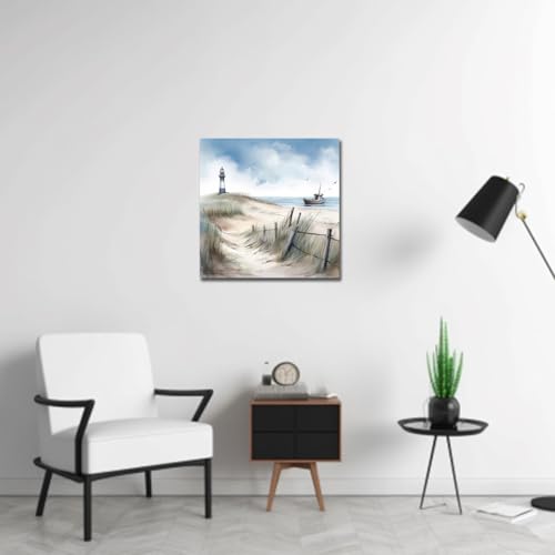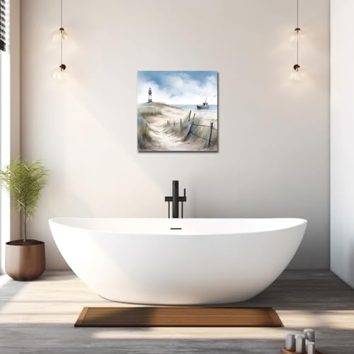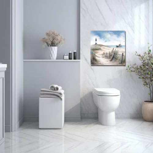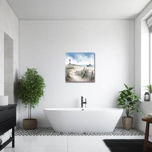 LZIMU - لوحة فنية جدارية للشاطئ الساحلي، لوحة قماشية مطبوعة للحمام بلون أزرق هادئ لديكور المنزل والبحيرة (ساحلي-3، 30.00 × 30.00 سم) من لزيمو