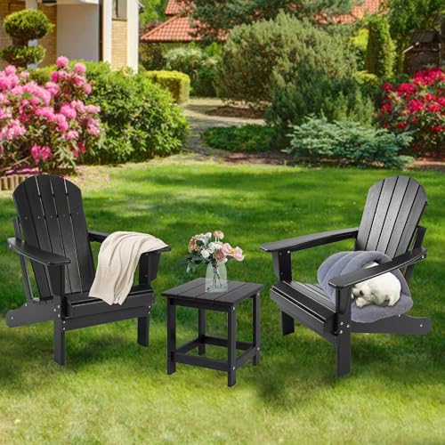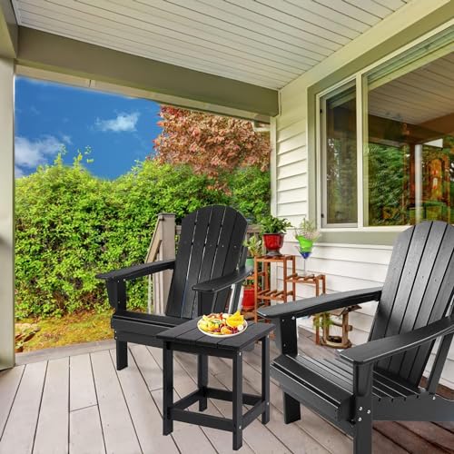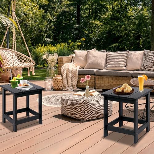 LZRS - ال زد ار اس طاولة جانبية مربعة للاستخدام الخارجي من اديرونداك فناء مركبة طاولات البولي ايثيلين عالي الكثافة للفناء الخلفي وحمام السباحة والمرافق الداخلية سهلة الصيانة ومقاومة للطقس أسود
