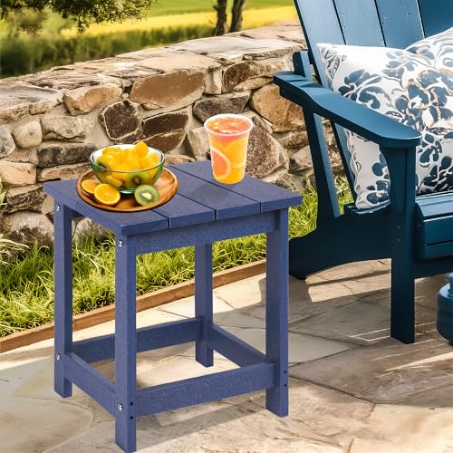LZRS - طاولة جانبية مربعة الشكل من ال زد ار اس اديرونداك، طاولة صغيرة من خشب البولي للفناء والفناء الخلفي وحمام السباحة، رفيق للاماكن الداخلية والخارجية، سهلة الصيانة ومقاومة للطقس، لون ازرق كحلي