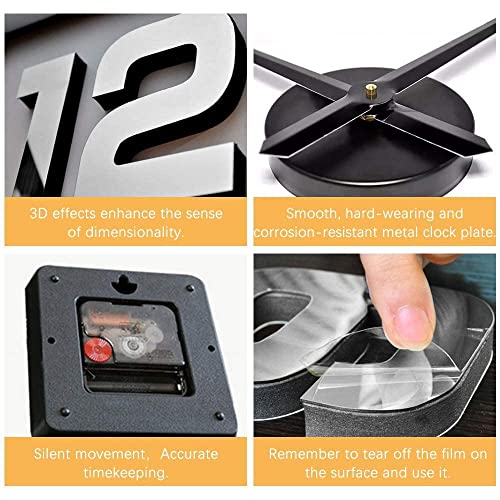 LZYMSZ - ساعة حائط مودرن كبيرة ثلاثية الابعاد بتصميم ستيكرات لاصقة عاكسة يمكنك لصقها بنفسك وبدون اطار لديكور المنزل والمكتب والفندق من جومين (لون اسود)، تناظري، أكريليك