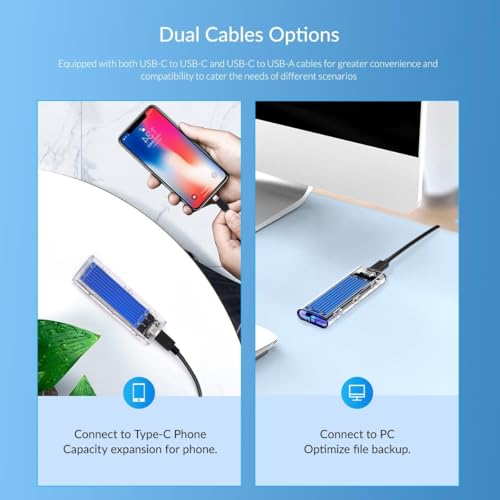 Generic - حاوية تخزين SSD بذاكرة مستديمة M.2، حافظة قرص صلب خارجية شفافة مع مشتت حراري ازرق، كابل USB 3.1 نوع سي الى USB-A