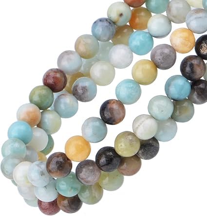 - الحجم والمواد: خرز امازونيت دائري متعدد الألوان 8 ملم. مقاس الفتحة 1 ملم