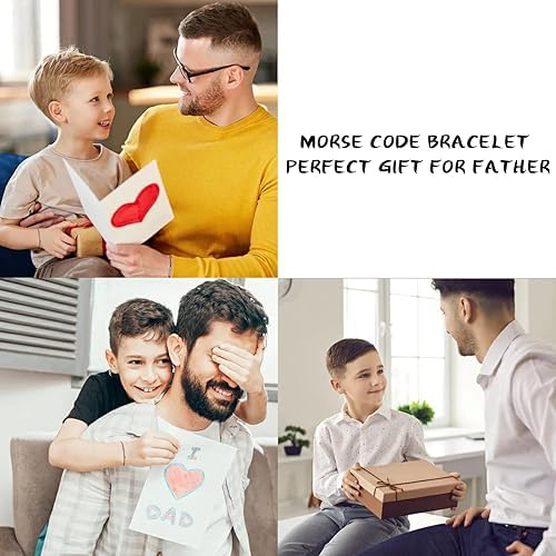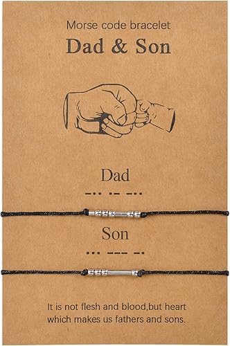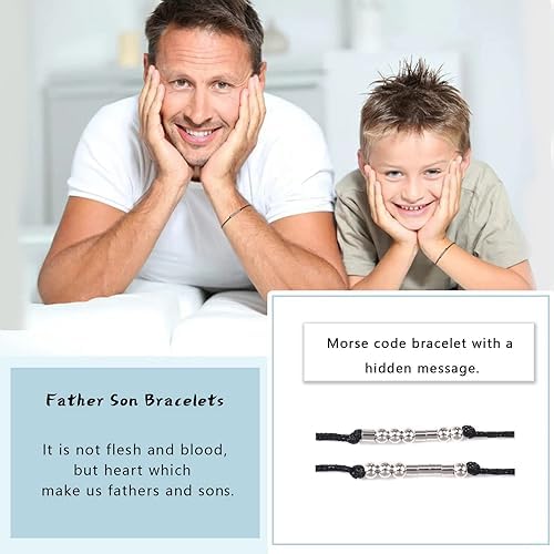Generic - سوار مورس كود من قطعتين من ام ايه اس، هدية عيد الاب، مجوهرات مصنوعة يدويا للاب والابن