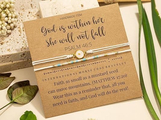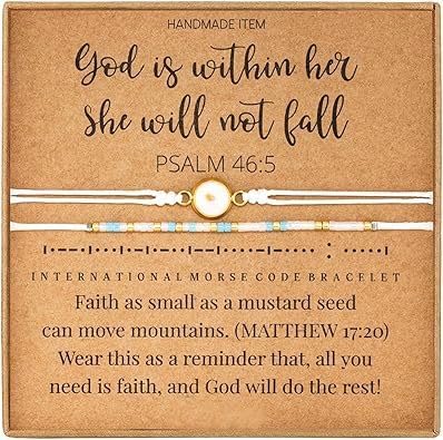 Generic - سوار خرز مشفر برسالة إيمانية "الله في داخلها، فهي لن تسقط" بلغة مورس، سوار من تشكيلة ماسترد سيد جوليري مصنوع يدويا من خرز ذهبي وأبيض وأزرق مع خيط قطني وهو مناسب للنساء من ام.ايه.اس، قطعتان