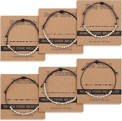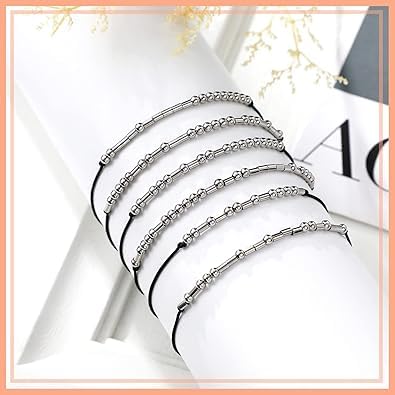 Generic - 6 قطع من اساور مورس كود ملهمة قابلة للتعديل من ام ايه اس، اساور فضية قابلة للتعديل لعيد الحب للنساء والرجال للاخت والام والابنة والعمة والمراهقات وعيد الام وعيد الميلاد والتخرج، 6 5