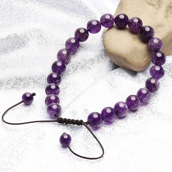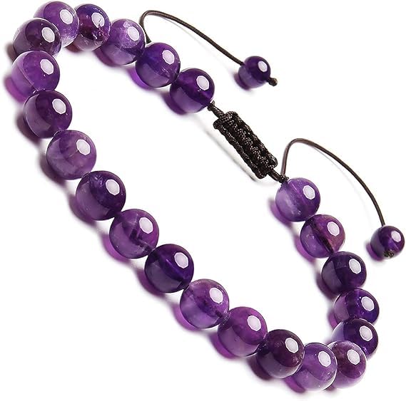 Generic - اساور طاقة من الاحجار الكريمة الطبيعية 8 ملم للجنسين من ام ايه اس، اساور كوارتز كريستالية شبه ثمينة بحبل مضفر، لتخفيف التوتر، مكرامية ريكي، احجار كريمة، جمشت
